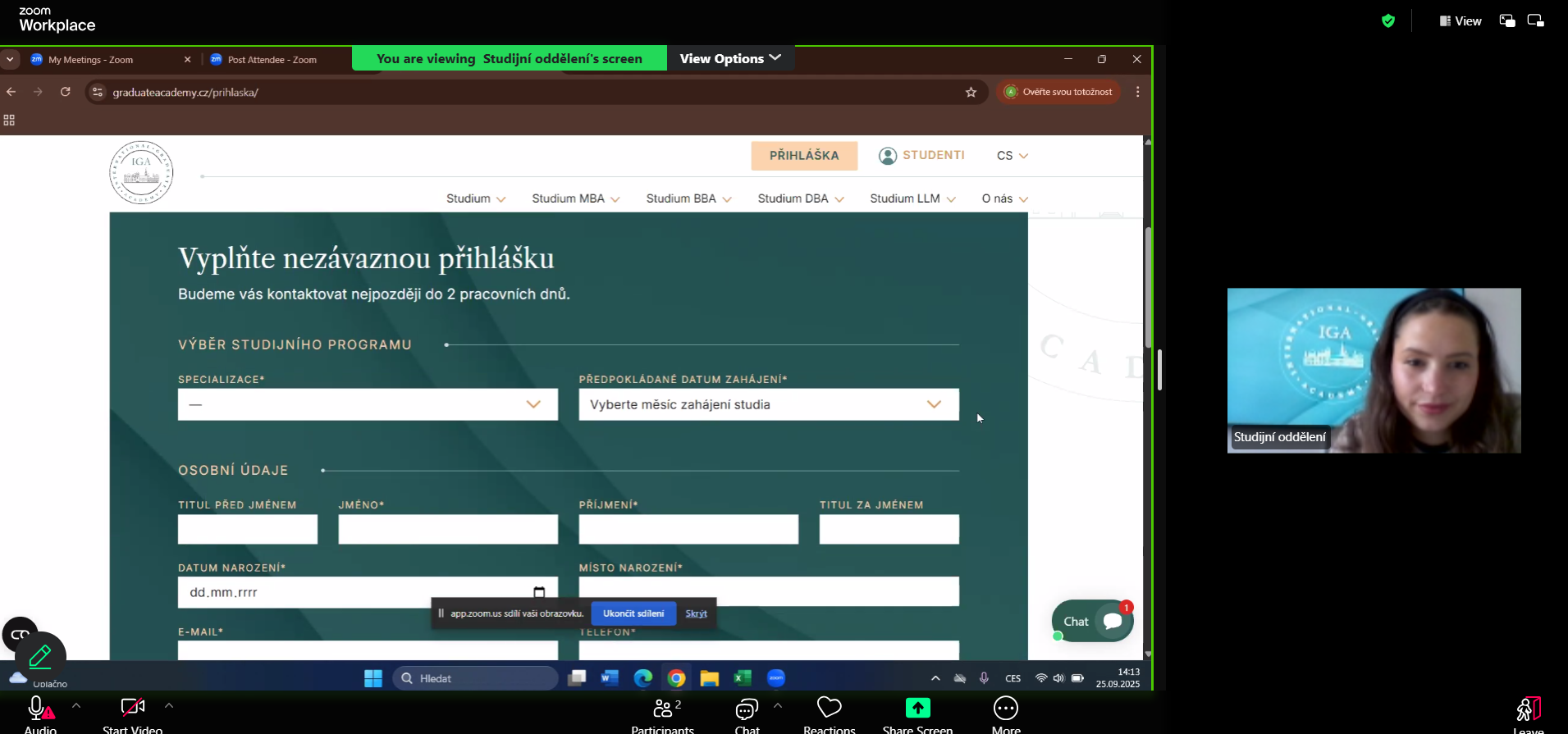 Vo štvrtok 25. septembra 2025 sa uskutočnil online Deň otvorených dverí na International Graduate Academy. Bolo nám potešením predstaviť vám našu ponuku špecializácií, vysvetliť štruktúru štúdia a zodpovedať všetky vaše otázky.