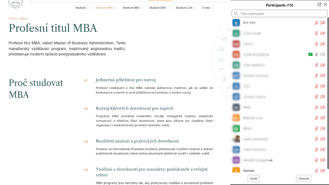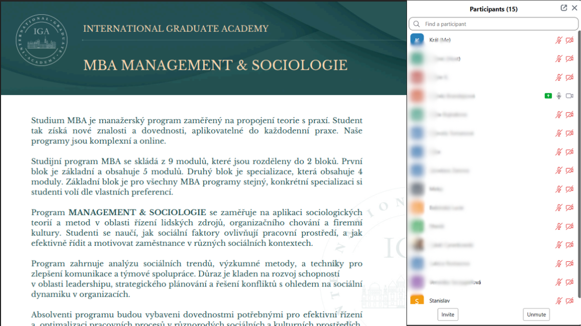 V stredu 28. januára 2026 sa uskutočnil online Deň otvorených dverí na International Graduate Academy. Bolo nám potešením predstaviť vám našu ponuku špecializácií, priblížiť štruktúru štúdia a zodpovedať vaše otázky.