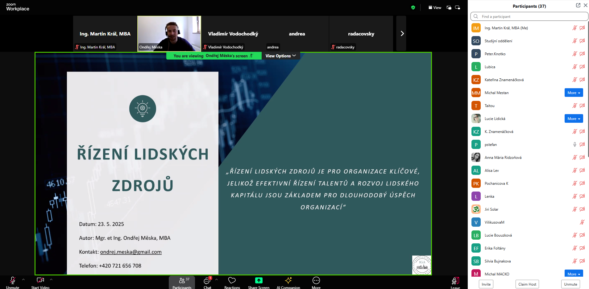 Ďakujeme všetkým, ktorí sa zapojili do online výučby, ktorá sa konala v piatok 23. mája 2025. Bola určená pre študentov programov MBA, BBA, DBA a LLM. Aj keď účasť nebola povinná, veľmi nás potešil váš záujem aj počet pripojených študentov. Veríme, že výklad prispel k lepšiemu pochopeniu študijných modulov a pomohol vám zorientovať sa v obsahu programu.