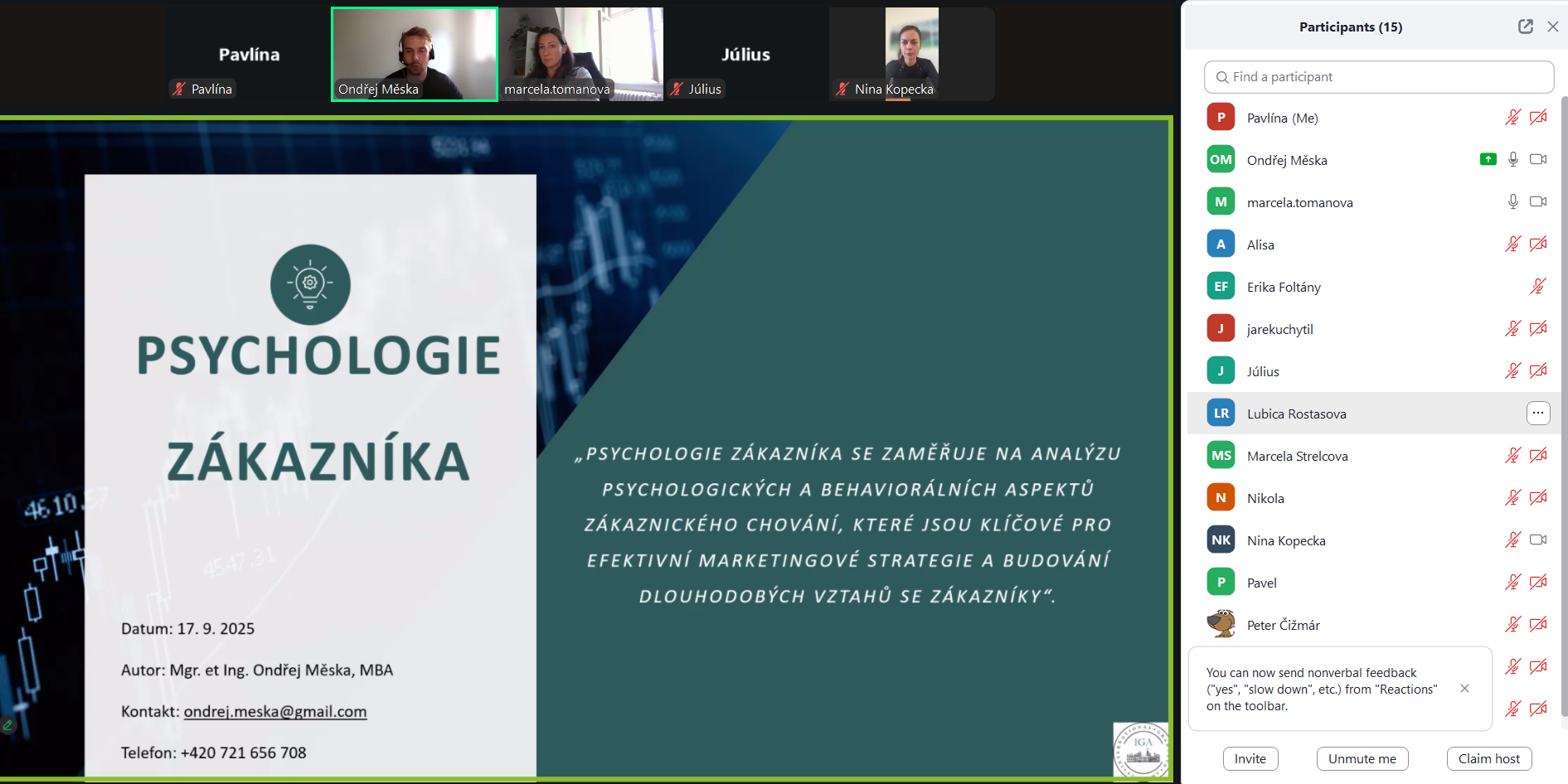 Dňa 18. 9. 2025 prebehol online webinár: Psychológia zákazníka s lektorom Ondrejom Meškom.